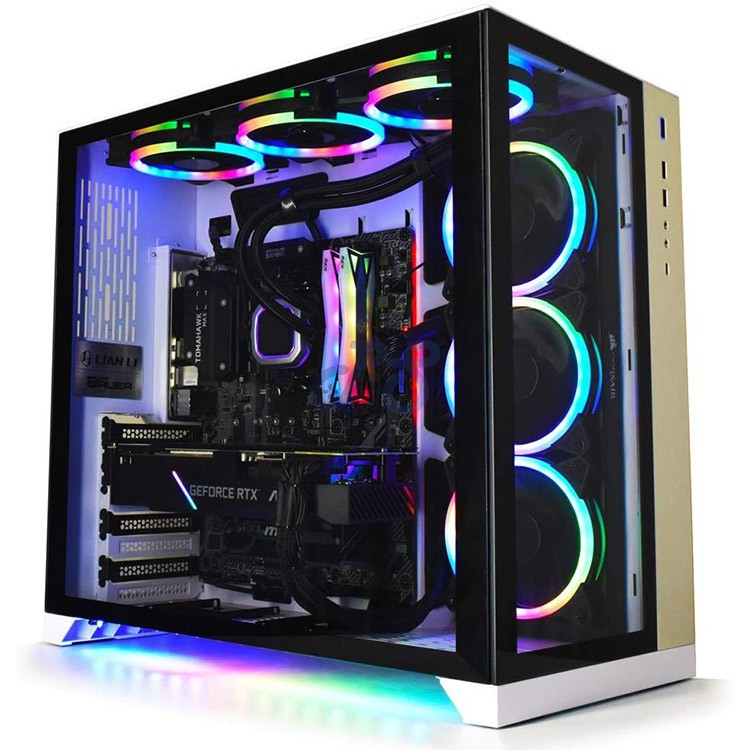 مشخصات فنی:- پردازنده اینتل Core i9 هشت هستهای، اورکلاک شده در سرعت 5 گیگاهرتز با پردازنده توربرو - خنک کننده پردازنده مایع 360 میلیمتری- کارت گرافیک انویدیا جی فورس RTX 2080 SUPER با هشت گیگابایت رم GDDR5 با حداکثر رزولوشن 4K و فریم ریت 60 و پشتیبانی از واقعیت مجازی- 16 گیگابایت رم RGB DDR4 با سرعت 3200 مگاهرتز- هارد SSD با ظرفیت ۲۴۰ گیگابایت- هارد HDD با ظرفیت دو ترابایت- کیس Lian Li مدل PC-O11 به رنگ سفید Dynamic Edition و محفظه شیشهای تقویت شده- سیستم عامل ویندوز ۱۰