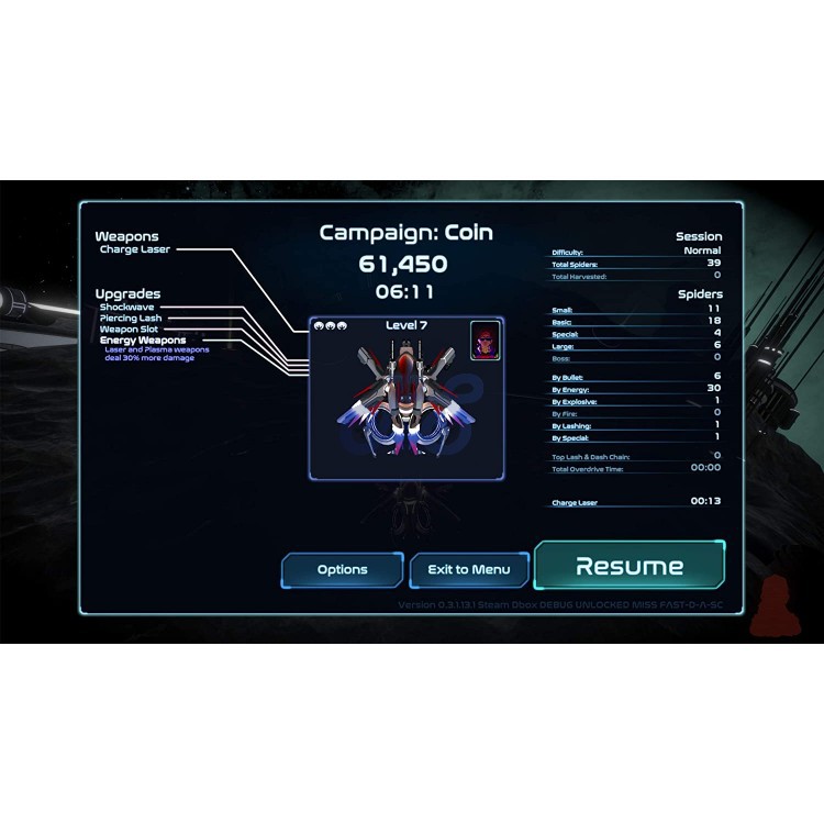 ساندتراک این بازی در سبک موسیقی سینث ویو تدوین شده است که با همکاری FiXT Neon و هنرمندانی چون Scandroid، 3Force و Fury Weekend تولید شده است. دارای تعداد زیادی ارتقاء برای جمع آوری است که شما را در مبارزات زنده نگه میدارد. سلاحهای متنوعی در بازی وجود دارد که شامل آتش افروز و نابودگر علف میشود و هر سلاح دارای یک حالت قوی ویژه است.